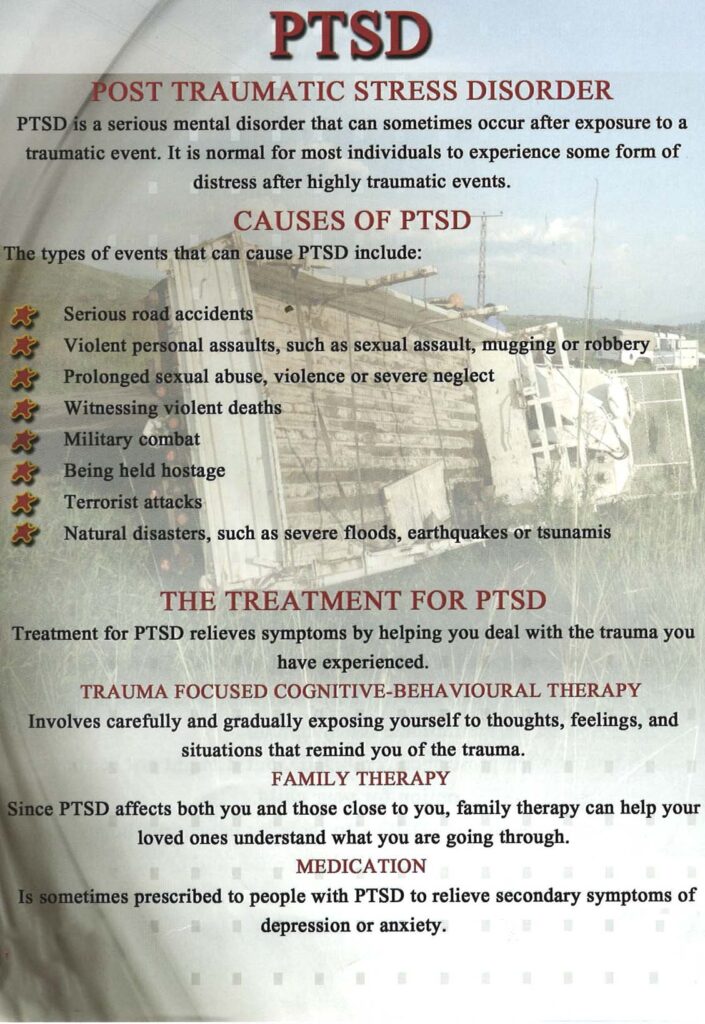 PTSD is a serious mental disorder that can sometimes occur after exposure to a traumatic event. It is normal for most individuals to experience some form of distress after highly traumatic events.